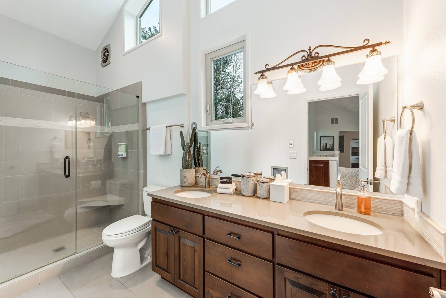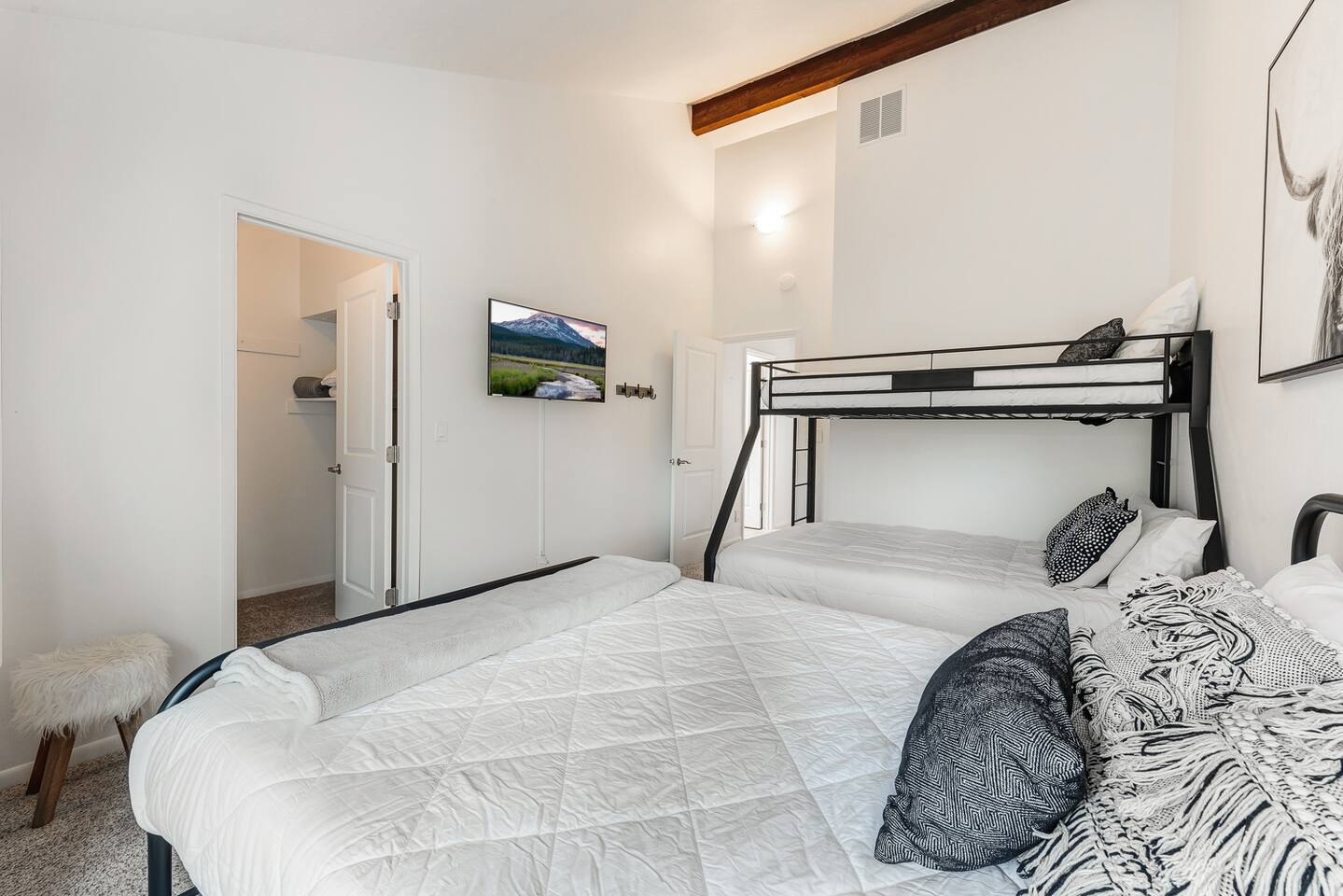 All of the amenities of Sunriver can be accessed via a short bike or car ride from this property's location. There is space for 5 cars at this location, depending on the sizes of the vehicles. Shops, dining, ski rentals, activities, and coffee, are all within a 10-minute bike ride or 5-minute drive. You can also hop in the car and, in 5-20 minutes, be able to experience just about everything Central Oregon has to offer, including kayaking, rafting, rock climbing, caving, world-class fly-fishing, waterpark, bike riding, world-class skiing, hiking, and disc golfing.