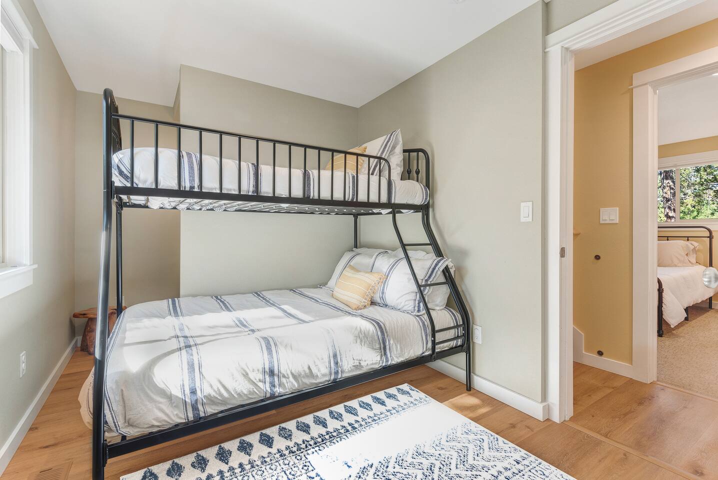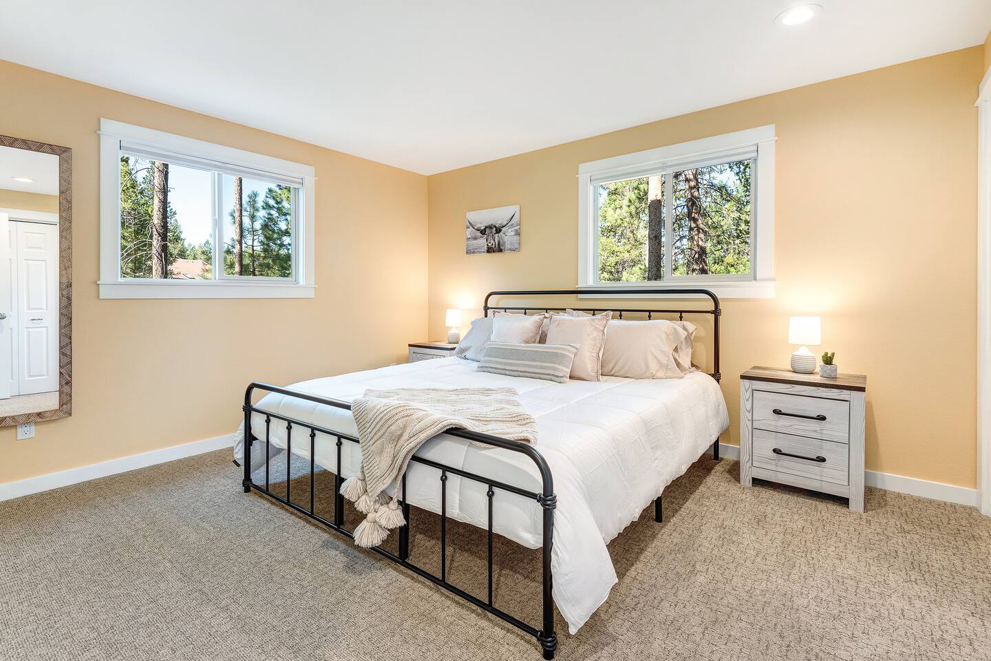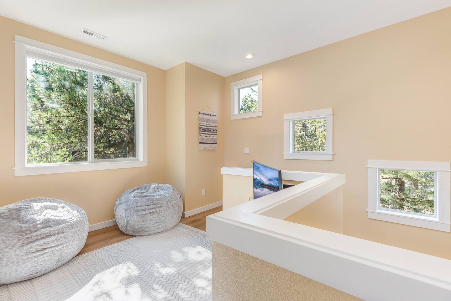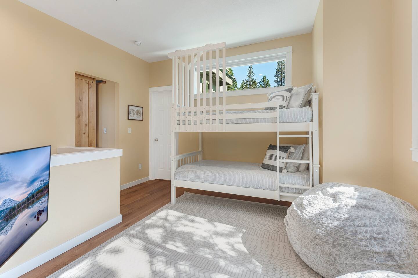 Indoor Space: - Fully updated kitchen. - Open common room for gathering. Smart TV in this room. - Downstairs common full bathroom with bathtub and shower. The Bedrooms: - There are beds for 9 people and an additional queen air mattress and twin mattress that could be put on the floor to sleep up to 12 total. - Downstairs King suite with full bathroom (shower). Smart TV in this room. - Upstairs King suite with full bathroom (shower) and a large walk-in closet with a vent that could sleep small kids (we have put our 2-year-old twins in their pac'n'plays in this closet). Smart TV in this room. - Downstairs bedroom with bunk (full bed on bottom, twin on top). Small play "cave" behind the bed for kids. - Upstairs loft with bunk bed (2 twins). Smart TV in this room. Outdoor Space: - Hot tub water is drained and refilled with fresh water between EVERY guest stay. - Large, fenced-in back patio for coffee in the morning, dining, hot tubbing, or letting the kids play. - Bike path out the back of the property for quick access to trails. - Just a 2-minute walk out the back of the property to all Sunriver Village has to offer! Other Amenities: - 8 reusable daily SHARC waterpark passes! - Bike and ski rental shop is a 1-minute walk from the house. - New AC and Furnace!