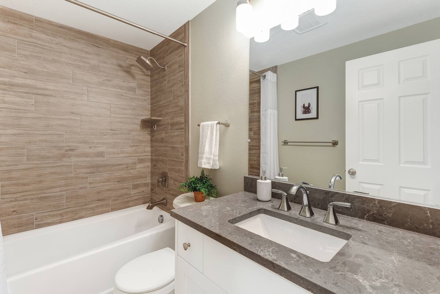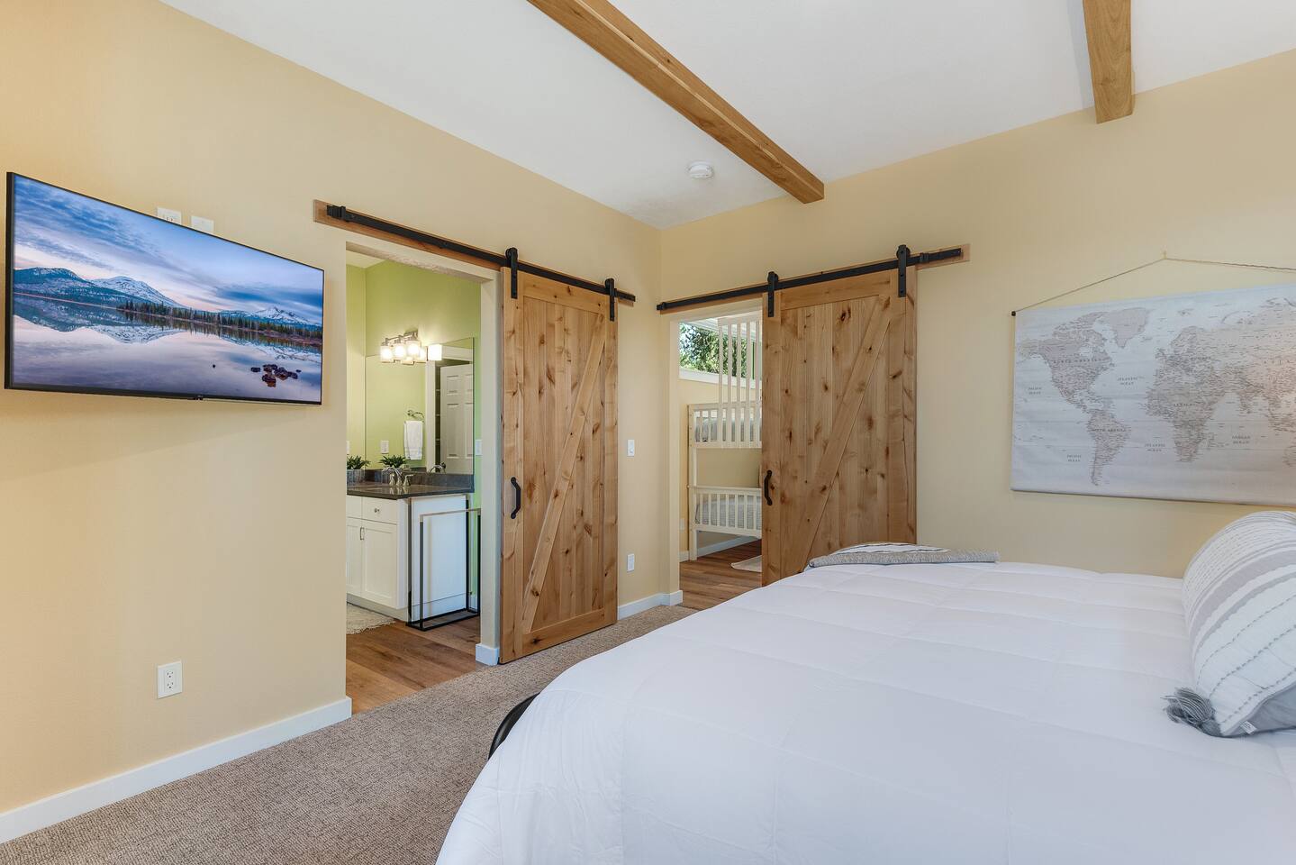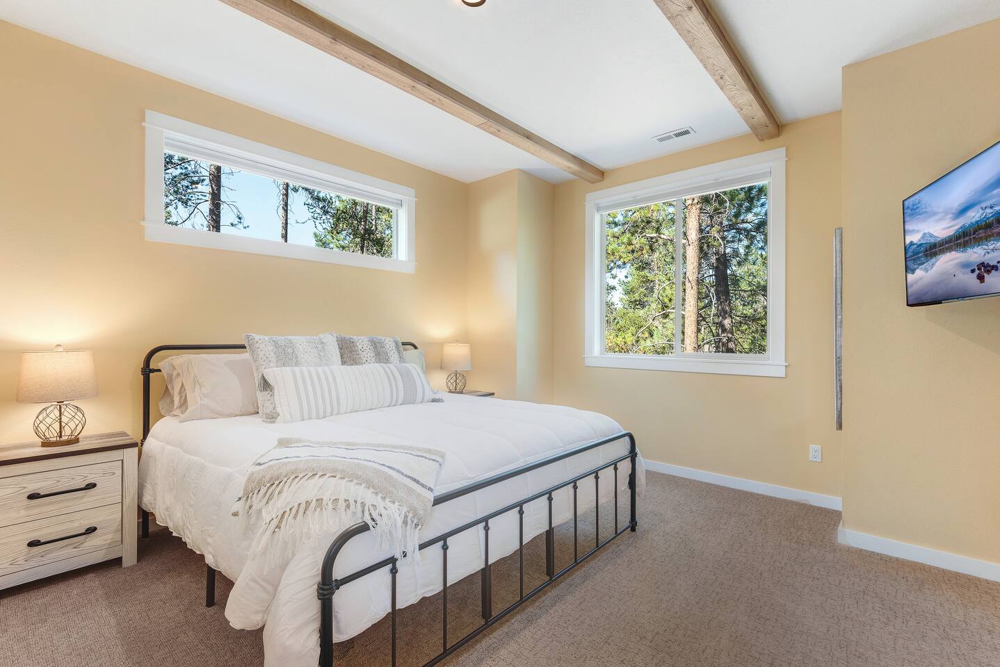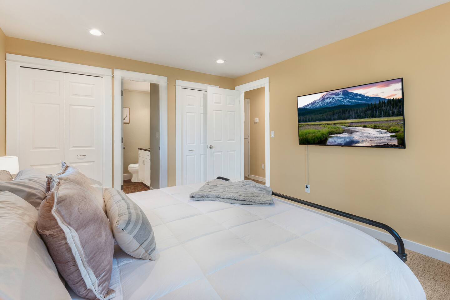 Indoor Space: - Fully updated kitchen. - Open common room for gathering. Smart TV in this room. - Downstairs common full bathroom with bathtub and shower. The Bedrooms: - There are beds for 9 people and an additional queen air mattress and twin mattress that could be put on the floor to sleep up to 12 total. - Downstairs King suite with full bathroom (shower). Smart TV in this room. - Upstairs King suite with full bathroom (shower) and a large walk-in closet with a vent that could sleep small kids (we have put our 2-year-old twins in their pac'n'plays in this closet). Smart TV in this room. - Downstairs bedroom with bunk (full bed on bottom, twin on top). Small play "cave" behind the bed for kids. - Upstairs loft with bunk bed (2 twins). Smart TV in this room. Outdoor Space: - Hot tub water is drained and refilled with fresh water between EVERY guest stay. - Large, fenced-in back patio for coffee in the morning, dining, hot tubbing, or letting the kids play. - Bike path out the back of the property for quick access to trails. - Just a 2-minute walk out the back of the property to all Sunriver Village has to offer! Other Amenities: - 8 reusable daily SHARC waterpark passes! - Bike and ski rental shop is a 1-minute walk from the house. - New AC and Furnace!