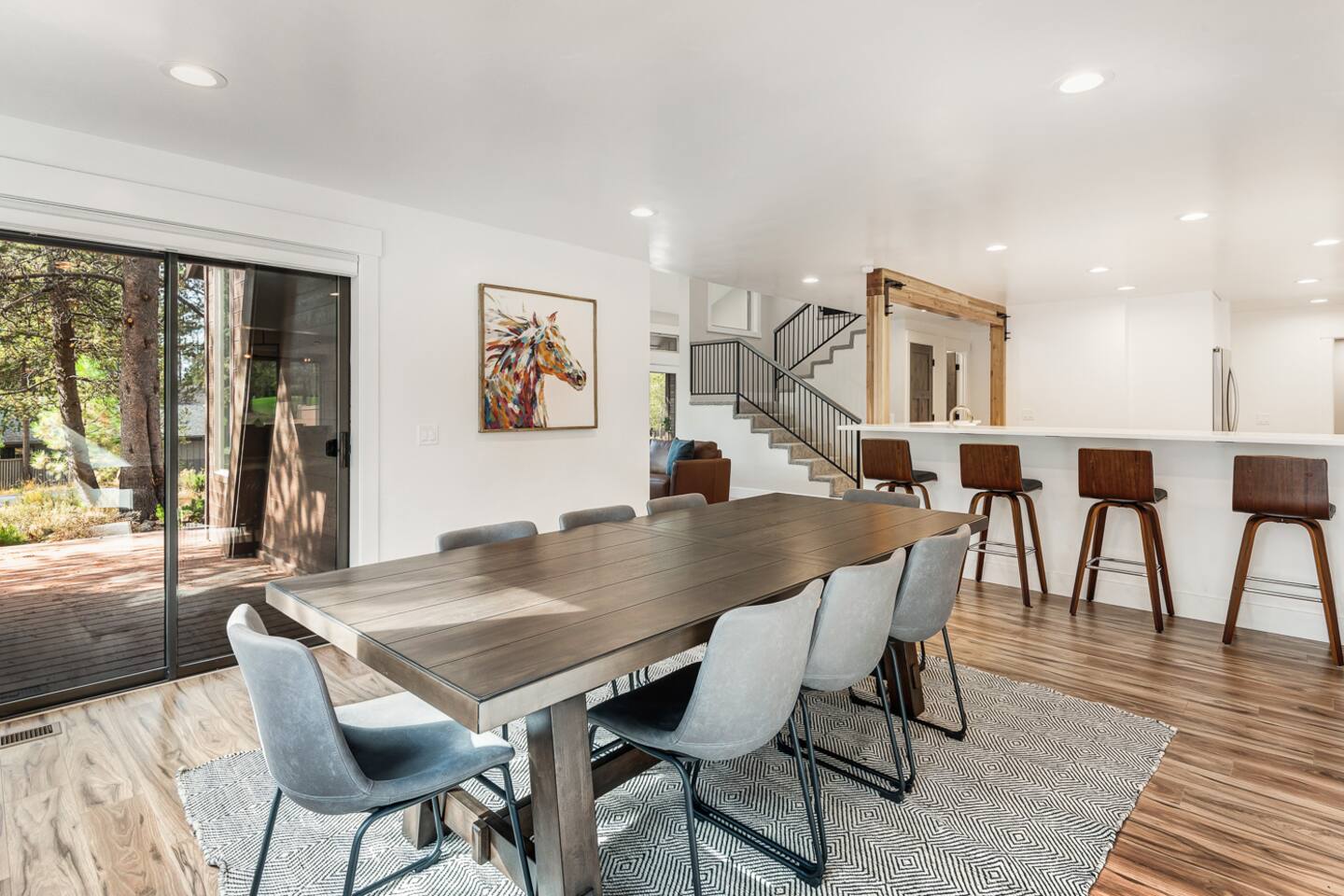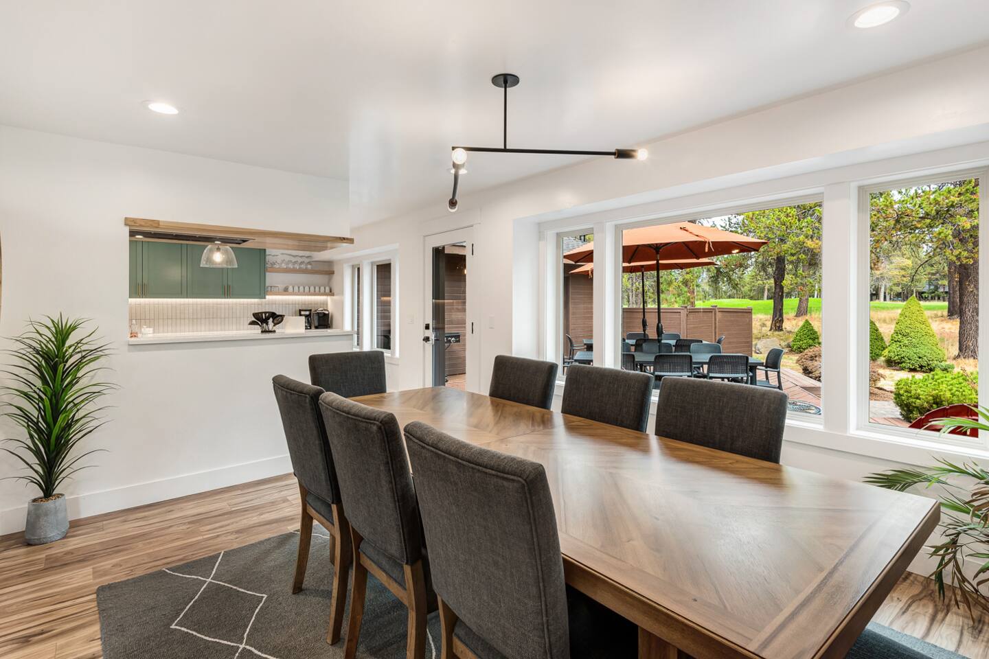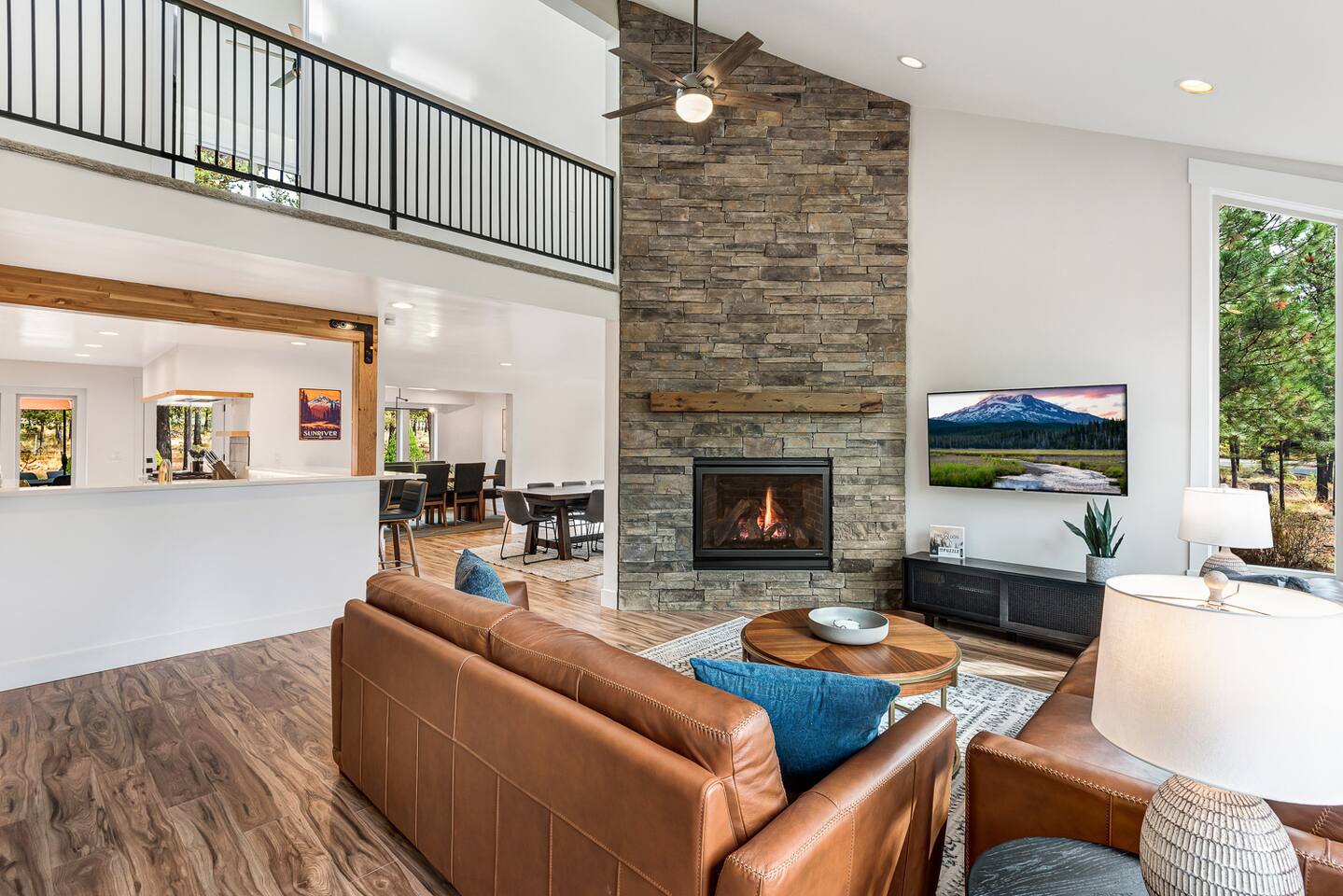 - Hot tub fully drained and refilled with fresh water between EVERY guest stay. - Gorgeous home, fully updated from top to bottom in an excellent central Sunriver location. - Short walk or bike ride to Fort Rock Park. - 5-minute drive to the Woodlands Golf Course, Sunriver Village for coffee, food, ice cream, and entertainment. - 10-minute bike ride (5-minute drive) to the Sunriver SHARC water park. - 2 separate dining rooms for large gatherings. - Golf course and forest views from house!