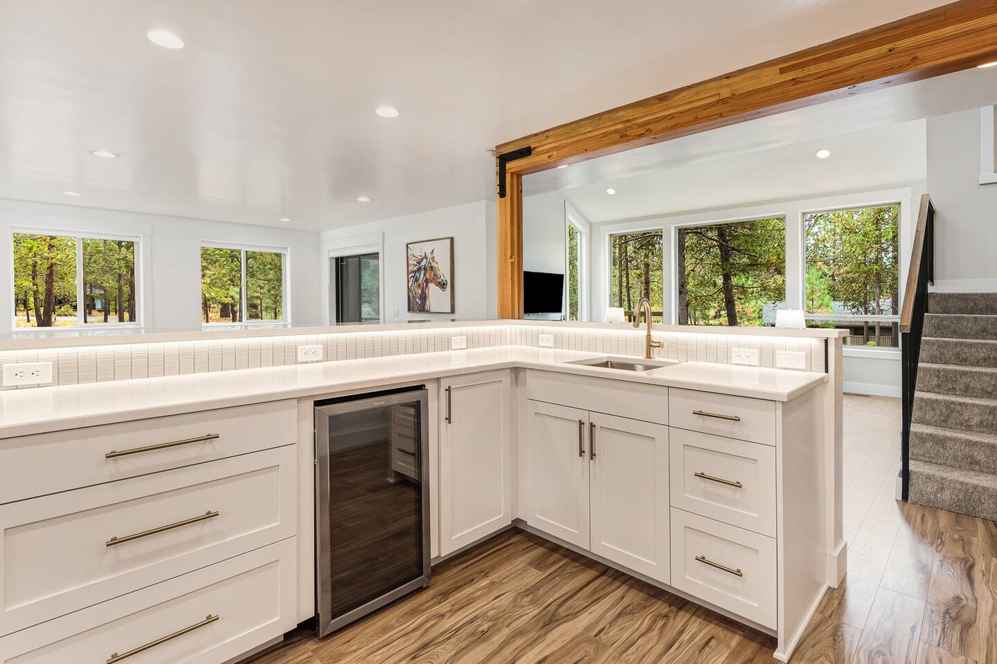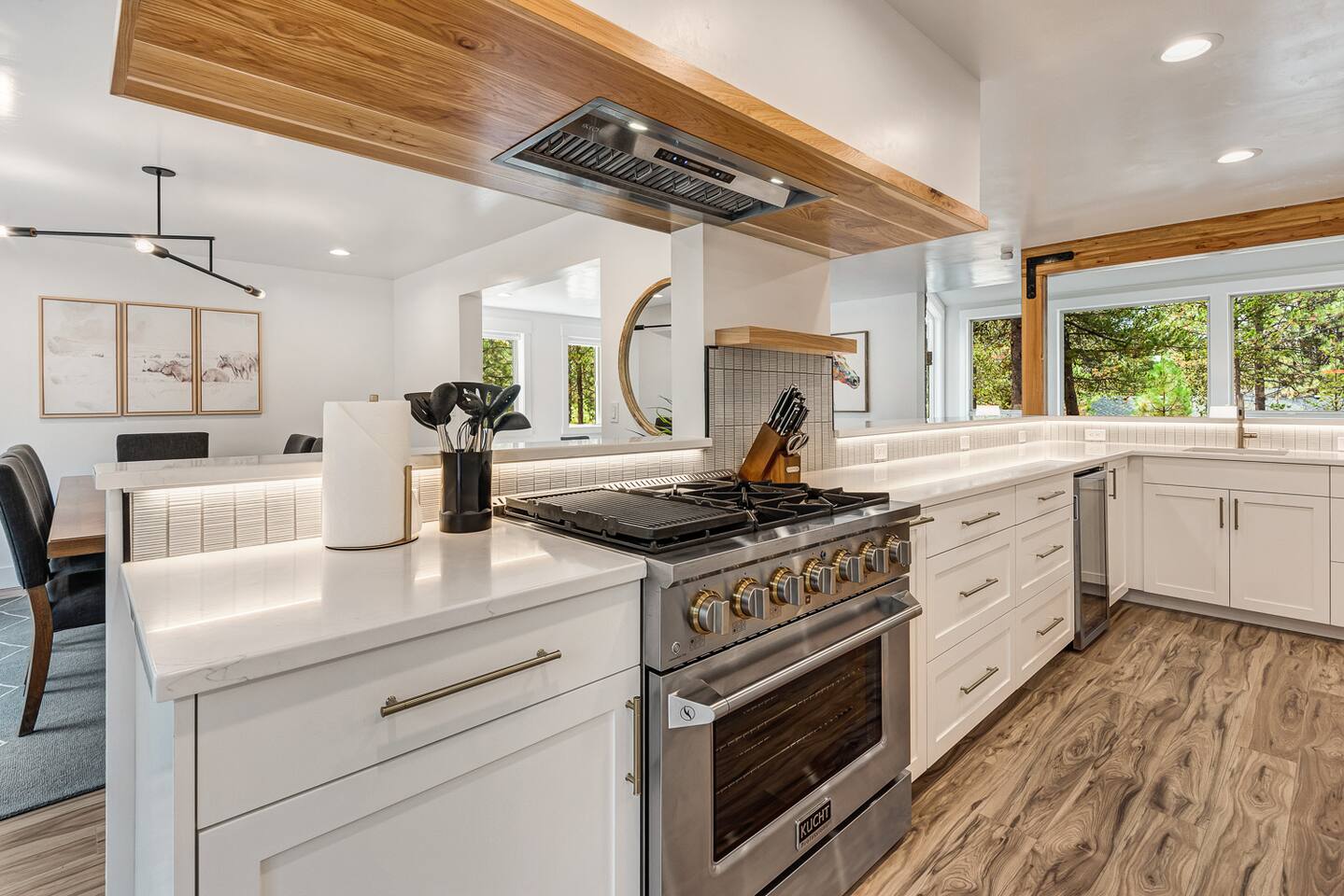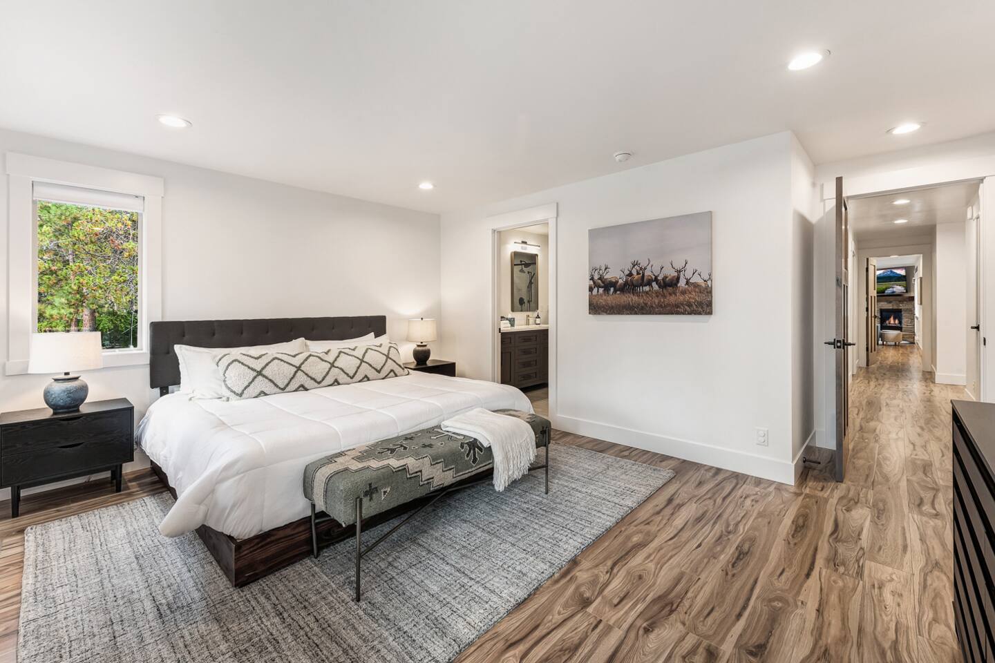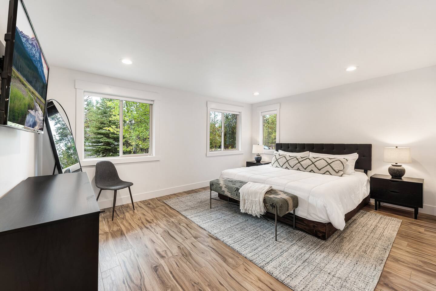 - Hot tub fully drained and refilled with fresh water between EVERY guest stay. - Gorgeous home, fully updated from top to bottom in an excellent central Sunriver location. - Short walk or bike ride to Fort Rock Park. - 5-minute drive to the Woodlands Golf Course, Sunriver Village for coffee, food, ice cream, and entertainment. - 10-minute bike ride (5-minute drive) to the Sunriver SHARC water park. - 2 separate dining rooms for large gatherings. - Golf course and forest views from house!