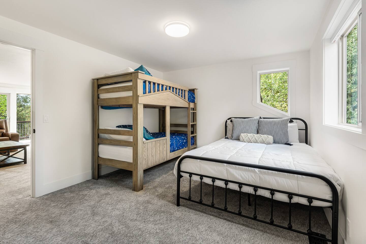 Indoor Space: - Beds for 12 people (queen air mattress included to sleep an additional 2 people for a total of 14). 5 bedrooms (2 downstairs King suite bedrooms, 1 upstairs king bedroom, 1 upstairs queen bedroom, 1 upstairs queen bedroom with twin size bunk also). - 2 separate dining rooms for large gatherings. - Air hockey and shuffleboard in the garage. - 4.5 bathrooms (2 King suite bathrooms downstairs, 1/2 bath downstairs, 2 full bathrooms upstairs. - Expansive, fully updated kitchen. Outdoor Space - Hot tub fully drained and refilled with fresh water between EVERY guest stay! - Large back deck with barbecue and lots of seating overlooking the Woodlands golf course and open forest space. House is on the golf course for an amazing view but sits back from the course a bit for privacy and out of the way of stray golf balls. - Excellent spot for kids to play in the snow on the golf course and forest space in the winter or to go cross-country skiing or snowshoeing! Other Amenities - 12 passes to the Sunriver SHARC water park included beginning in January 2024! - All bedrooms except one have smart TVs or streaming devices for you to use your favorite streaming service.